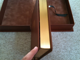 On my first inspection of this edition I couldn't fail to focus on how delicate the box seems. With a white paper label stuck on the front (seemingly cut and stuck by hand), the whole thing is frail and certainly not sturdy like many of the slipcases in the rest of my collection. The first impression came in a slipcase, but this was changed for a box some time in 1974, and I think that was a mistake; whilst the box certainly protects the book better, it is so weak that it's very prone to damage, and the large white paper label doesn't date well. My own copy has a small tear on the bottom.